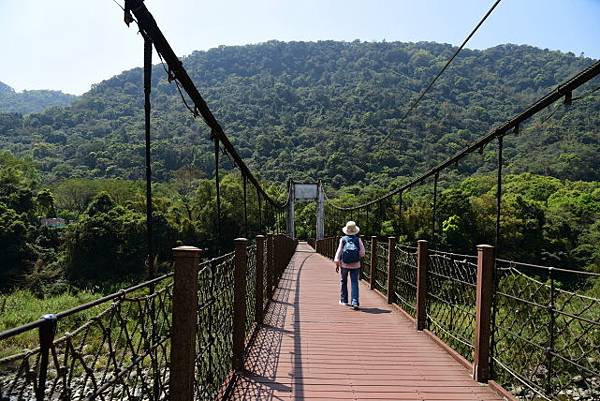 走在內灣吊橋上眺望內灣大橋