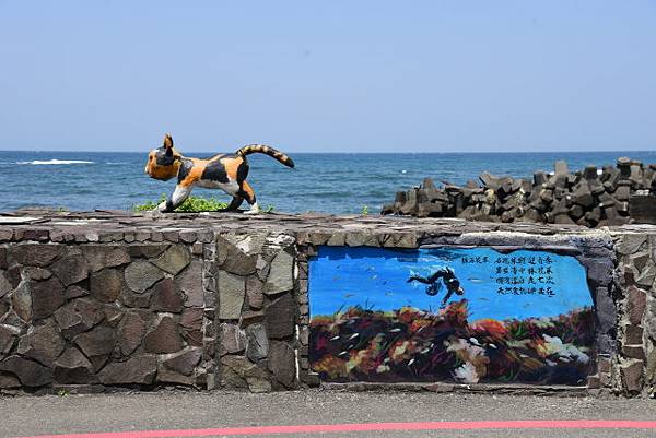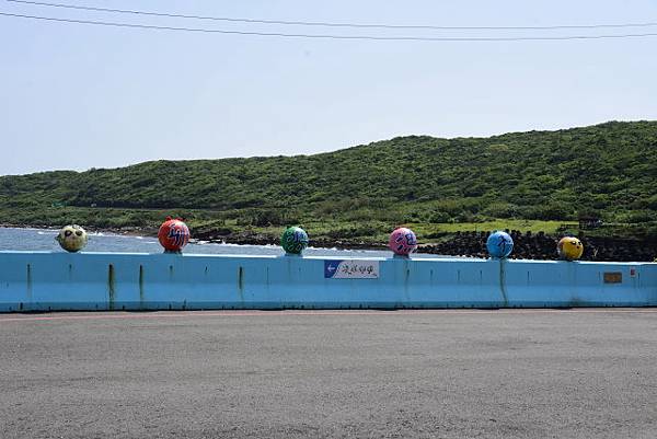 觀海步道堤防上有五顏六色的可愛彩繪浮球點綴