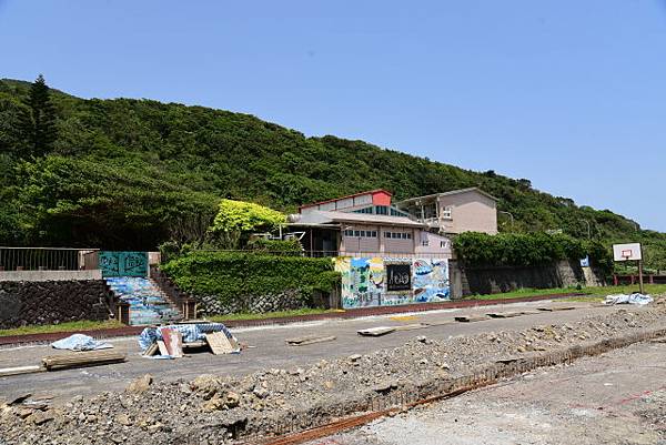 走上彩虹階梯眺望福連國小,操場正在整修。
