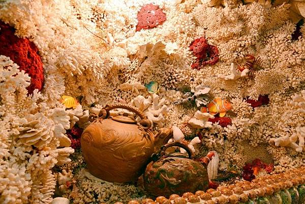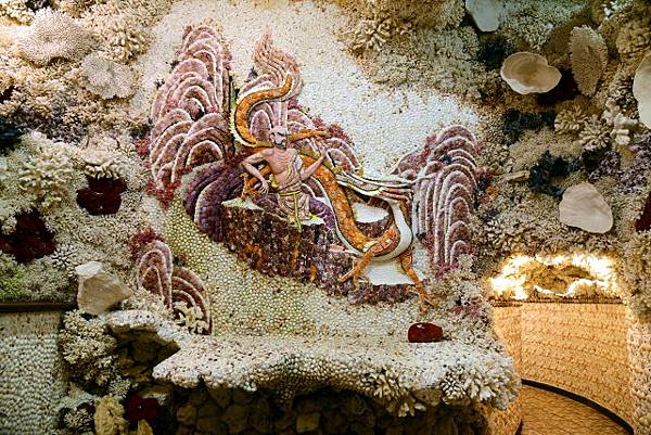 放眼所見,皆由珊瑚、貝殼、七彩扇貝…等妝點。
