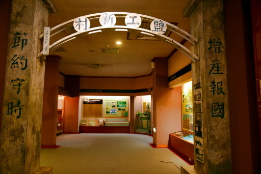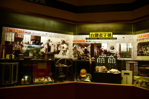 鹽工新村展示區,有很多復古的設備及老照片,還有台鹽的產品。