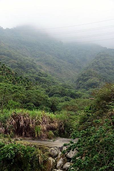 站在吊橋上可遠眺大尖山及二尖山風光,可惜雲霧籠罩!