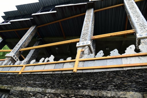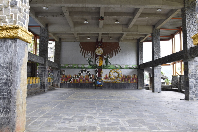 神山天主堂活動廣場,牆上圖騰充滿濃厚的魯凱族色彩。