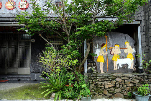 於是獵人回部落告知頭目,經頭目允許後就來此建屋居住,成為神山第一家。屋前石板雕刻家族遷徙的故事。