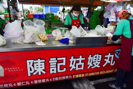 阿慧說陳記姑嫂丸好吃,試吃了花枝丸,及花枝蝦仁排(甜不辣 ),的確不錯吃!同學們開始大採購。
