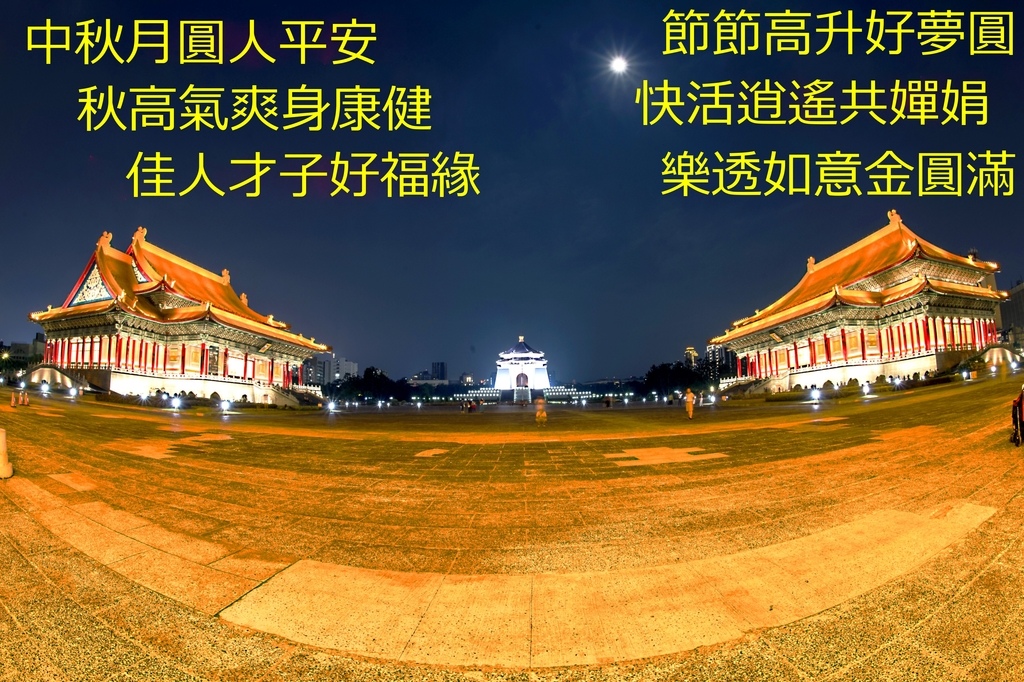 上圖是我弟拍攝的照片及自創的中秋賀詞