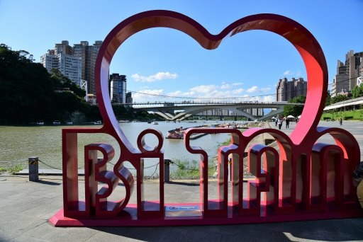 碧潭愛心地標,為了閃避背靠地標而坐的一位大姐,鏡頭東喬西喬還是有一點她的影子。