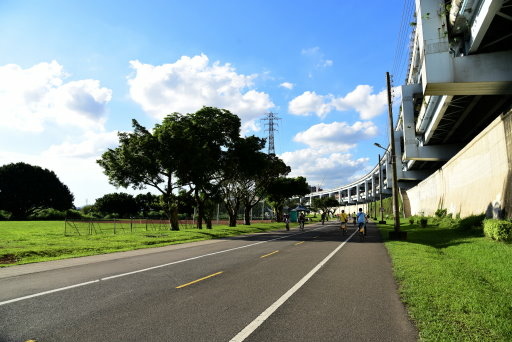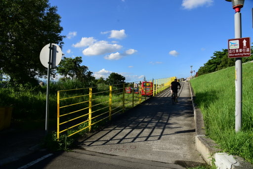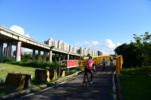 回到新店溪右岸自行車道終點華江橋,完成左右岸O形路線。繼續往淡水河右岸自行車道前進。