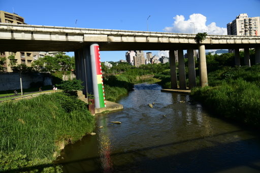 再騎了幾分鐘後,看到橫跨景美溪的水源快速道路。岸邊往上游的自行車道是景美溪右岸自行車道,改天再騎過去看看。