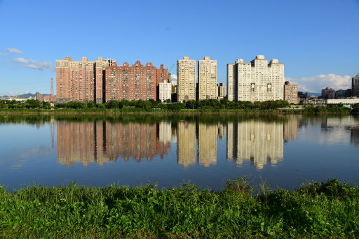 過了秀朗橋頭,自行車道離開新店溪河道,騎上越堤道,經過新店區環河路大鵬2號橫移門,有空再來時右岸再好好拍照一下。