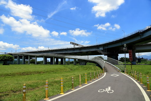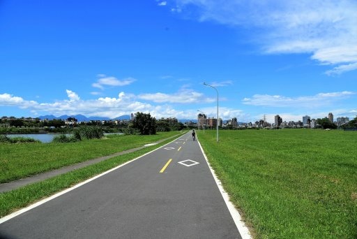 離開蝴蝶公園,回到萬板大穚旁自行車道繼續往上游河濱自行車道前進。