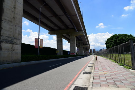 下陸橋後,接上板橋環河西路4段,前後看不到往河濱自行車道的入口,只好一直往前騎!