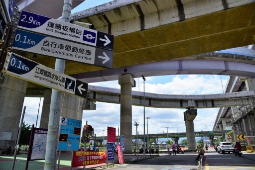 還好騎了幾分鐘後,終於看到江子翠橫移門,可以進入河濱自行車道了。