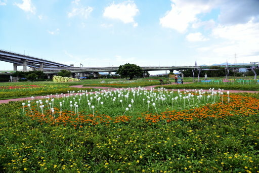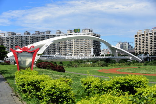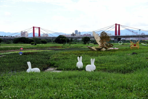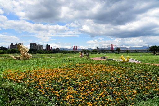 還有美麗的花海,遠方紅色橋樑為光復橋。