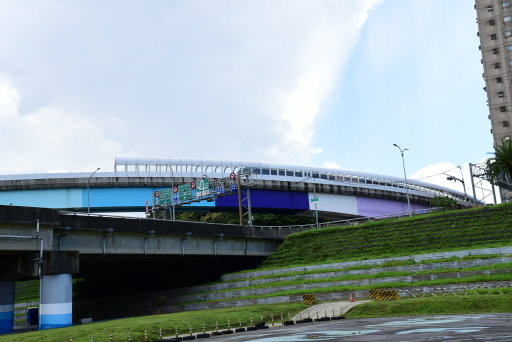 進入江子翠橫移門,上頭橋樑為萬板大橋,先過去華翠大橋看看。