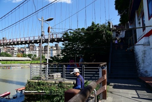 新店溪左岸自行車道終點-碧潭吊橋,一旁有階梯可以上吊橋西岸入口。
