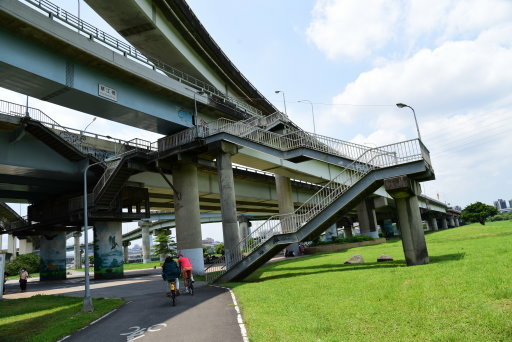 走過葫蘆國小跨堤人行陸橋,騎過百齡橋,再騎去士林夜市買好吃的豆花,消暑一下!夏天騎車真熱!