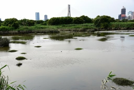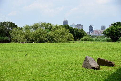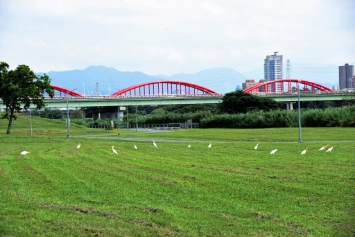 華江雁鴨自然公園有大片青青草地,吸引鳥兒前來。