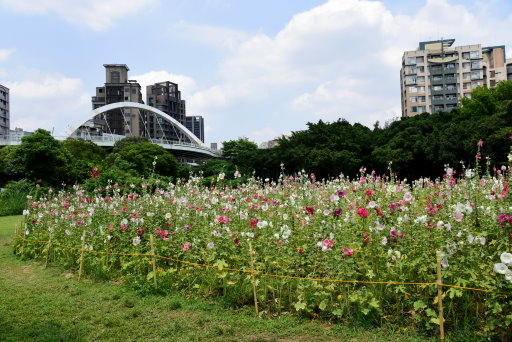 夢幻蜀葵花海、 浪漫滿分古亭河濱公園、碧草如茵廣大綠地,這就是台北市境內新店溪右岸自行車道的沿線景觀。