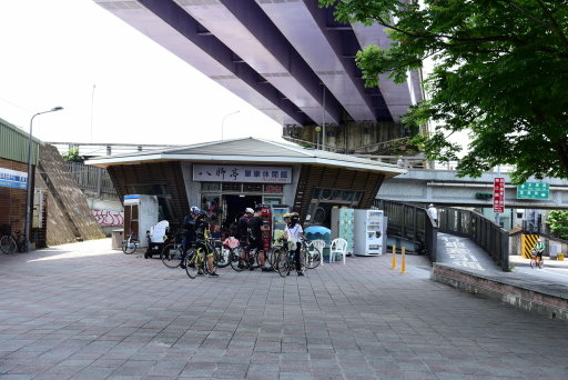 車友們休息區-八腳亭單車休閒館。右邊直走可到思源街自來水園區和公館商圈。