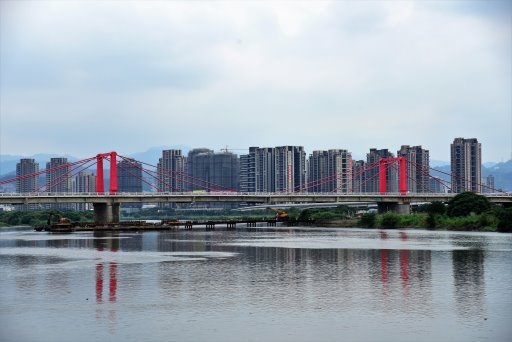 這裡是新店溪右岸1.5K,前方橋樑為永福橋,再過去是永福紅色水管橋。