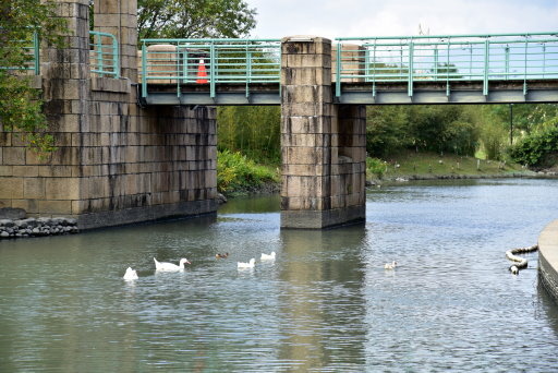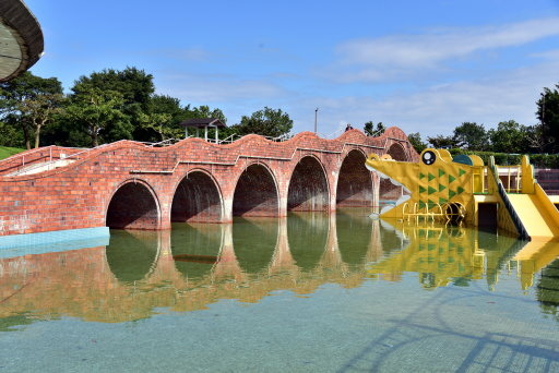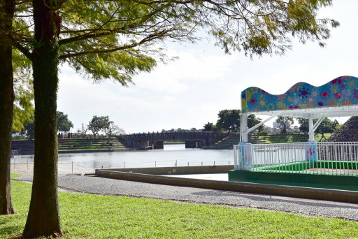 前方為臥龍橋,是冬山河流入親水公園的入口。往傳藝中心的水上巴士由橋下通過。