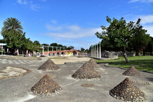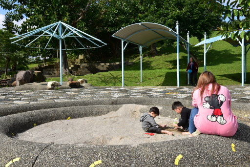 圓錐形卵石丘上面都有1個噴口,童玩節時應該也會噴出水柱吧!