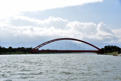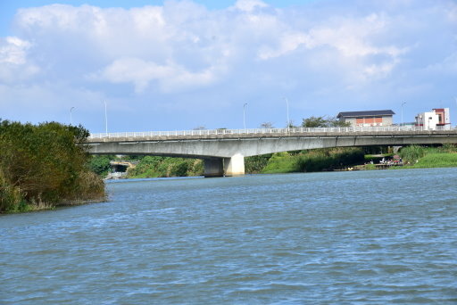 水上巴士通過臥龍橋進入冬山河,遠眺下遊利澤簡橋,我們往上遊航行。