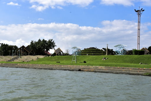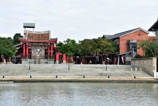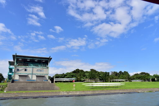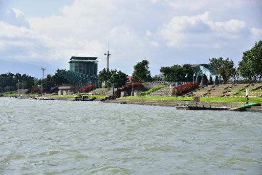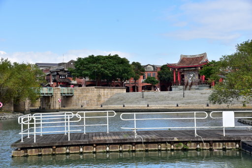 航行約18分鐘,已接近宜蘭國立傳統藝術中心冬山河乘船處。岸邊為文昌祠戲台。