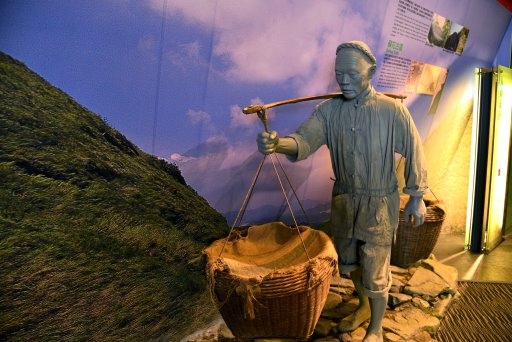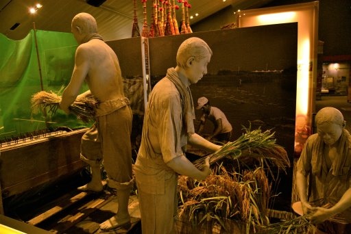 插秧塑像身上背著像龜殼的東西,我只知道老一輩人雨天會穿蓑衣。