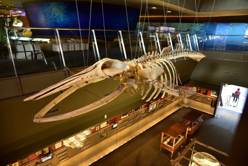 鯷鯨骨胳標本,底下為1樓時光廊。