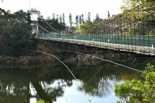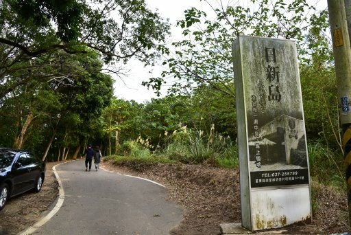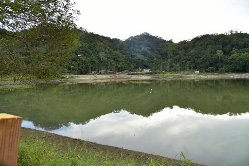 過二號吊橋後,再過去就是環湖公路,拍了日新島上的咖啡館-水榭樓台看板後隨即回頭。