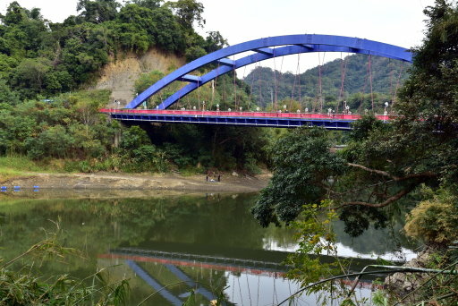 觀賞了美到爆的三灣落羽松,繼續前進來到明德水庫。下階梯來去走走明湖蘇堤步道。