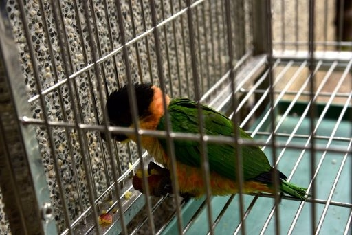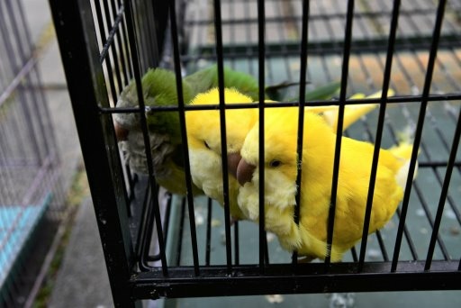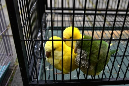 這兩隻金色鸚鵡,正在爭風吃醋,不知哪隻是小三或小王?
