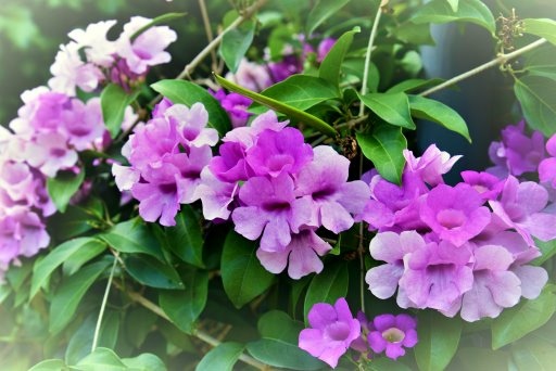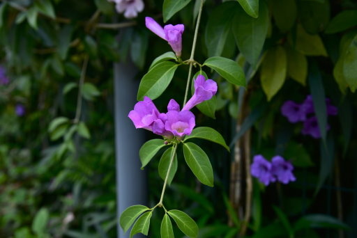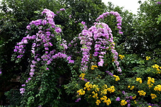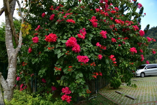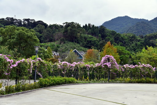 早上7:00自北投捷運站出發,來到南庄雲水度假森林。遊覽車停車場旁一整排蒜香藤開的燦爛美麗!