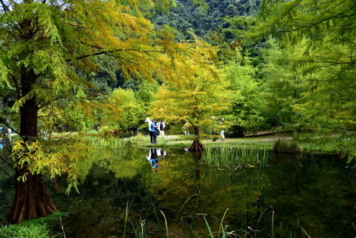 本來早上行程是安排要去參訪湖口某營區,因軍中臨時另有要務而取消,所以東勢林場2日遊改變行程,來南庄雲水度假森林欣賞落羽松。雖然落羽松才剛要換新裝,不過湖山山色也是挺吸引人的!