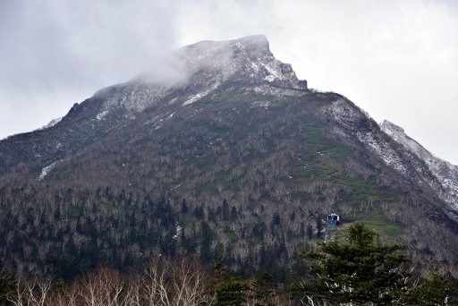 如果將照片放大,可見右下有座黑岳吊椅纜車站及一路之字形往上的登山步道。