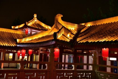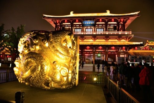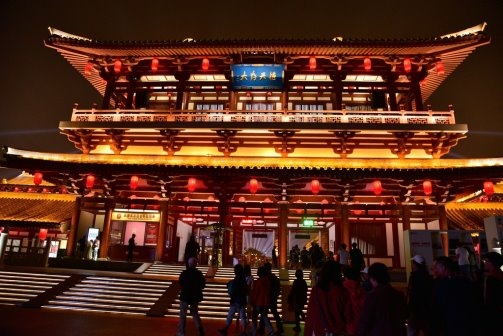 氣派華麗的仿唐建築,夜晚燈火通明,更加美麗!