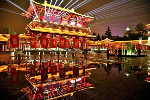 大唐芙蓉園,建於原唐代芙蓉園遺址上,是中國全方位展示盛唐風貌的大型皇家園林式主題公園。