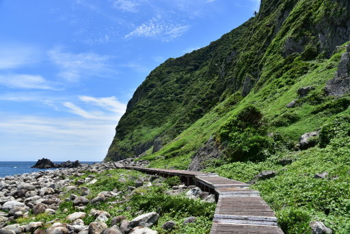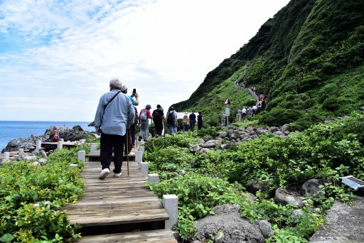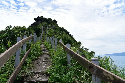 回頭看山上棧道,以前還沒有雷達站時,駐島人員都要爬到山頂去監看海上往來船隻。