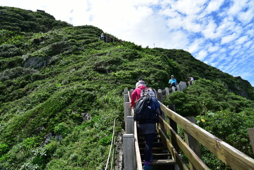 看到前方那麼陡峭的步道,有些人在此打退堂鼓。