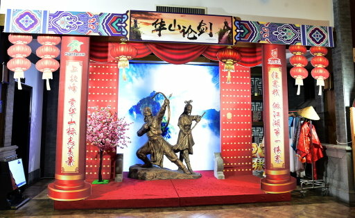 華山客棧,以金庸小說中的大俠精神為藍本,用故事 場景 人物,打造出以「俠」文化為主題的飯店。