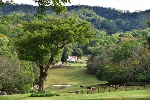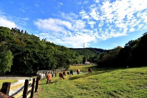 1日遊來到苗栗飛牛牧場。上圖歐式建築為牧場工房。