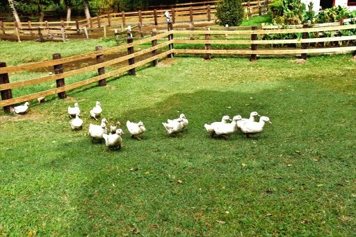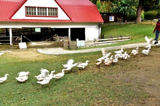 然後另一邊工作人員又搖著鈴鐺,所有的鴨鴨就又跑向他。