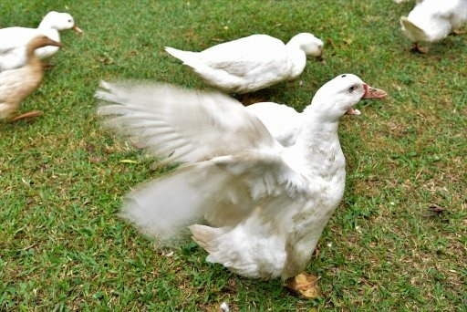 工作人員一灑飼料,鴨鴨就飛也似的跑向工作人員。