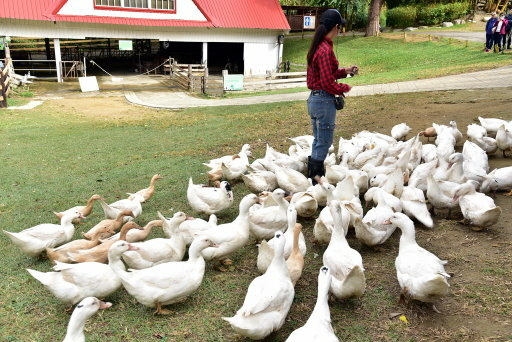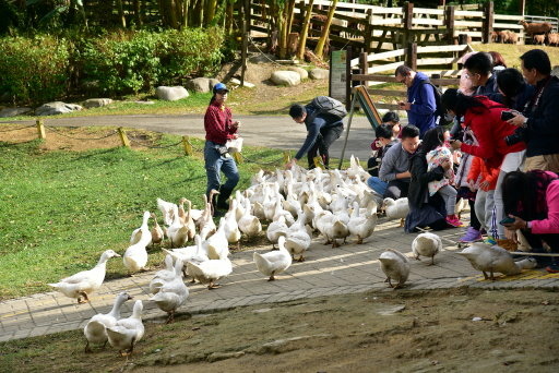 鴨鴨都擠到工作人員身旁,因為這裡有飼料吃。