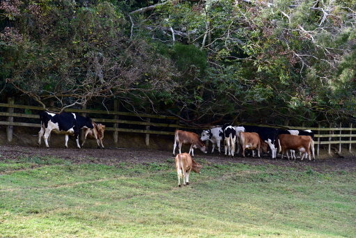飛牛牧場飼養的乳牛有來自荷蘭的荷仕登乳牛,和來自英國娟姍島的娟姍牛(黃色)。