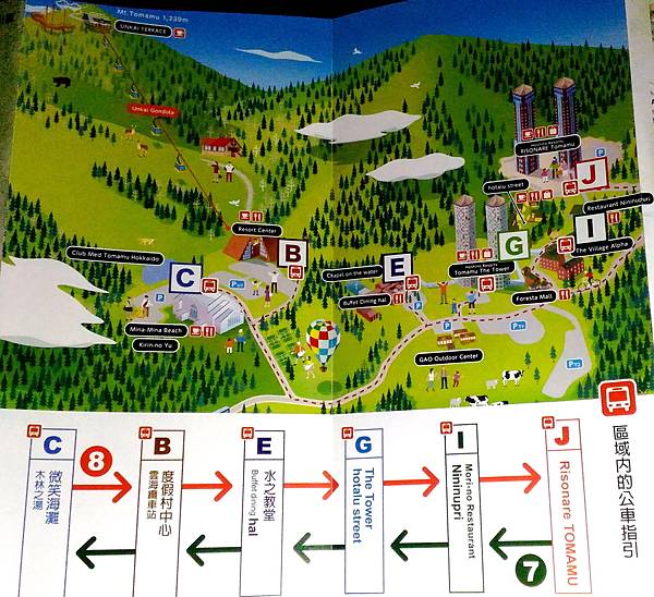 請看以下星野度假村Tomamu區域圖: