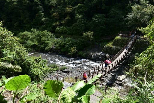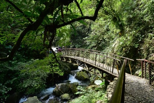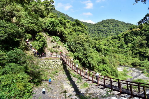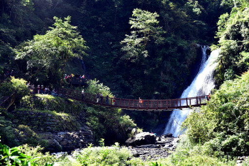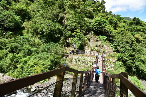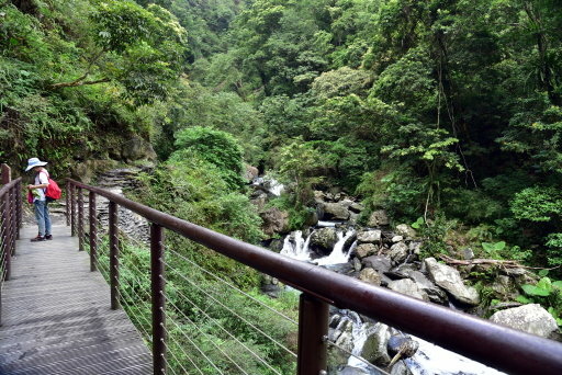 走過觀瀑吊橋,在通往第二層瀑布路徑上欣賞底下優美景色!