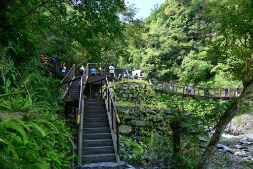 入口至第一層瀑布,步道平坦好走,只有這裡有點小爬坡。